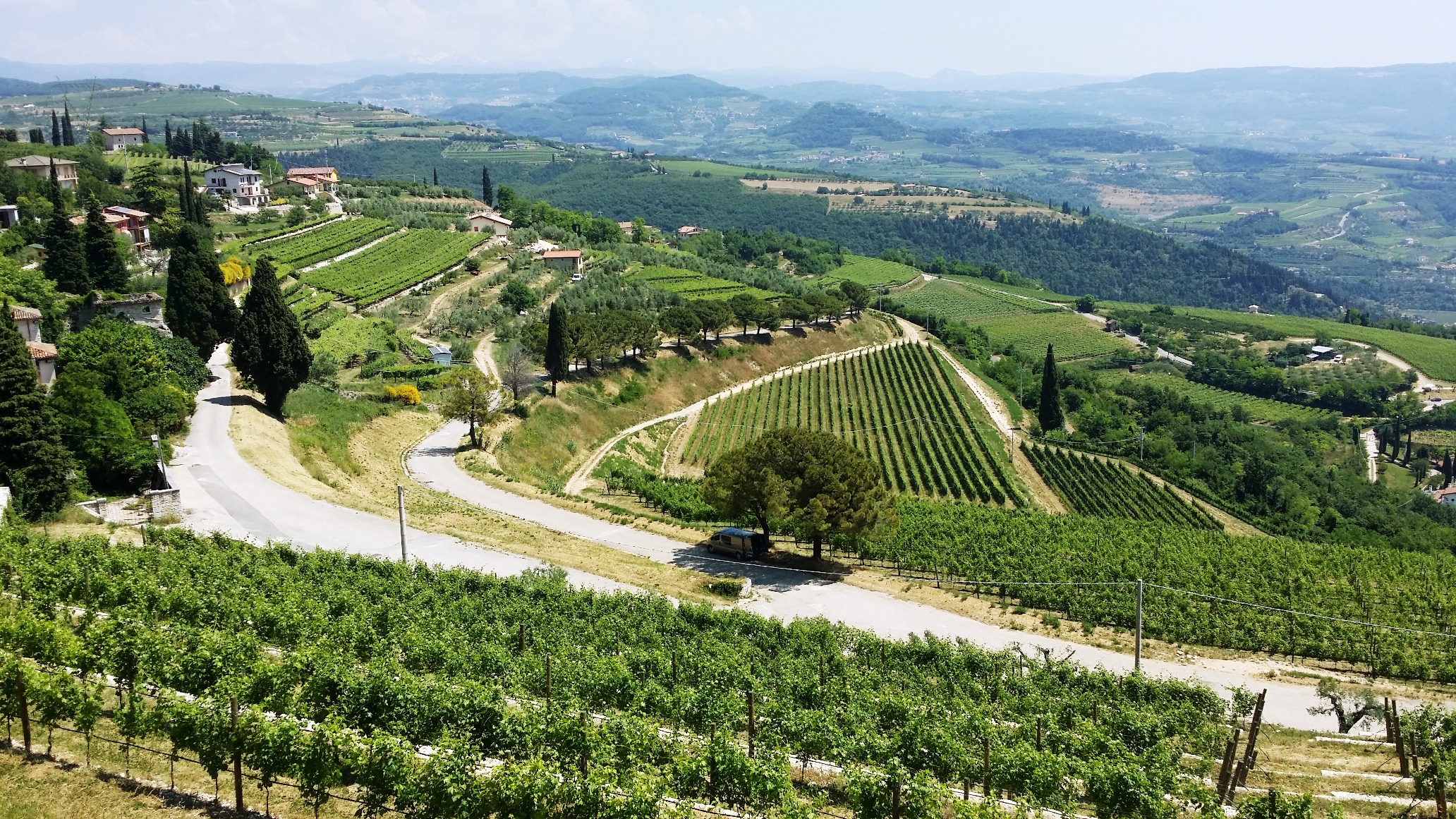 The views from the top of the hill were nothing short of spectacular. You could even see the Alps off in the distance between the vines. And a few metres down the hill on another plateau was the La Grola vineyard which produces another delicious wine, as I was to discover, one which has a bit of Shiraz thrown in for good measure.