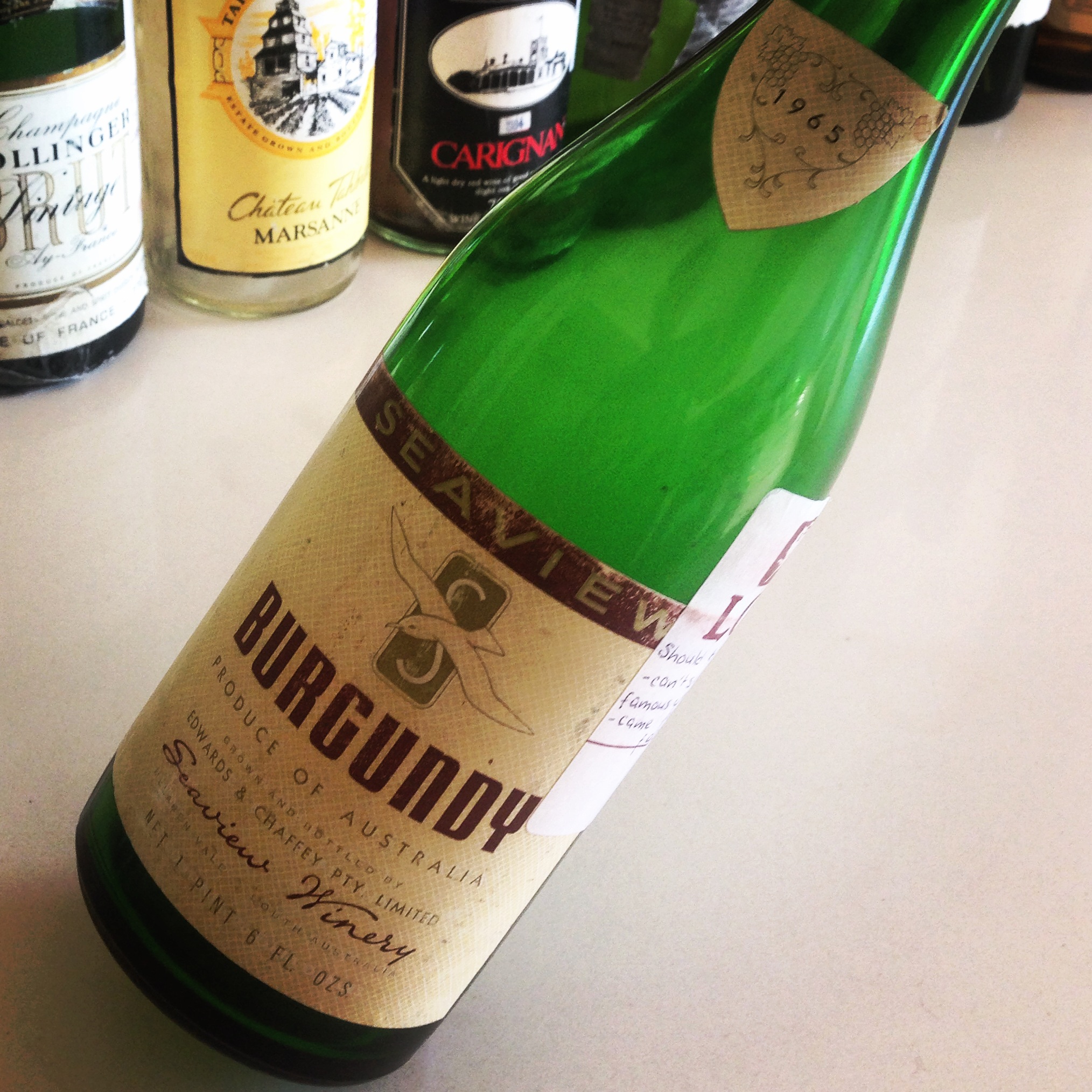 Next cab off the rank a 1965 Seaview Burgundy from Sterling.  This was a favorite of the afternoon, the fruit was still there as was the balance.  The Helen Mirren of wines, great pins.  Gently toiled earth, topsoil, Belgium chocolate, an old English country club.  Incredible length for a wine that I am sure was not supposed to last this long.  We assume this was a shiraz, the naming conventions in Australia at that time were somewhat arbitrary.
