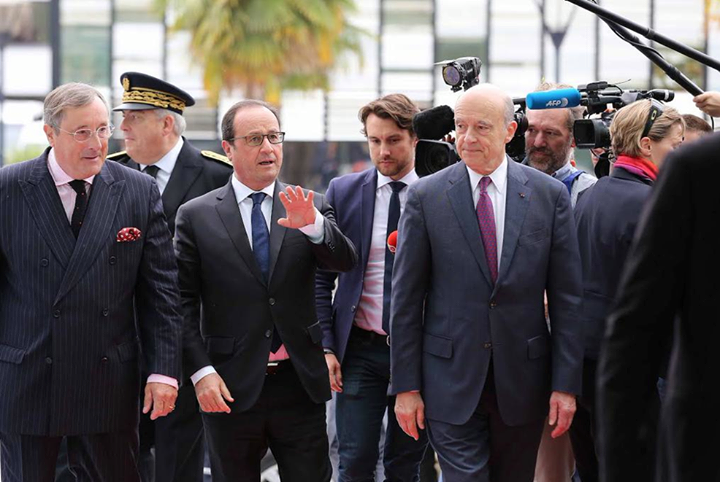 I was in the middle of a delicious mid-morning Champagne experience (1999 Bruno Paillard ‘Nec Plus Ultra’) when a pack of surly looking bodyguards headed our way. A storm of camera flashes followed, as staff and guests alike left their posts to get a glimpse. The ruckus? Le President himself of course, Francois Hollande, flanked by the much-adored mayor of Bordeaux, Alain Juppe (who, incidentally, has his eyes on the top spot- awkward small talk there I’m sure).